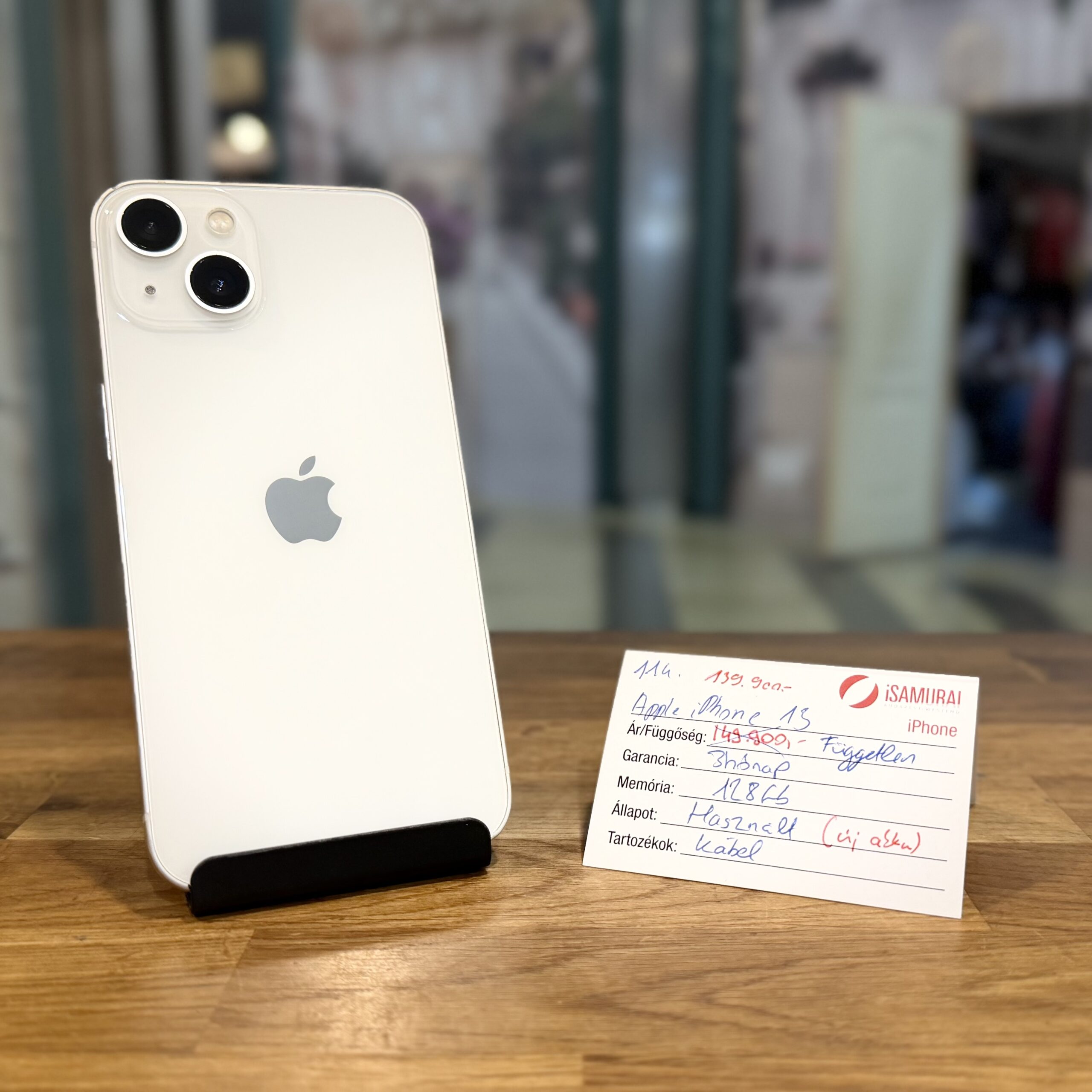 Eladó egy használt Apple iPhone 13 készülék. 128 GB belső tárhellyel, fehér színben, töltőkábellel, valamint 3 hónap iSamurai garanciával. A készülék kártyafüggetlen, bármely hálózaton használható. Új akkumulátort kapott.