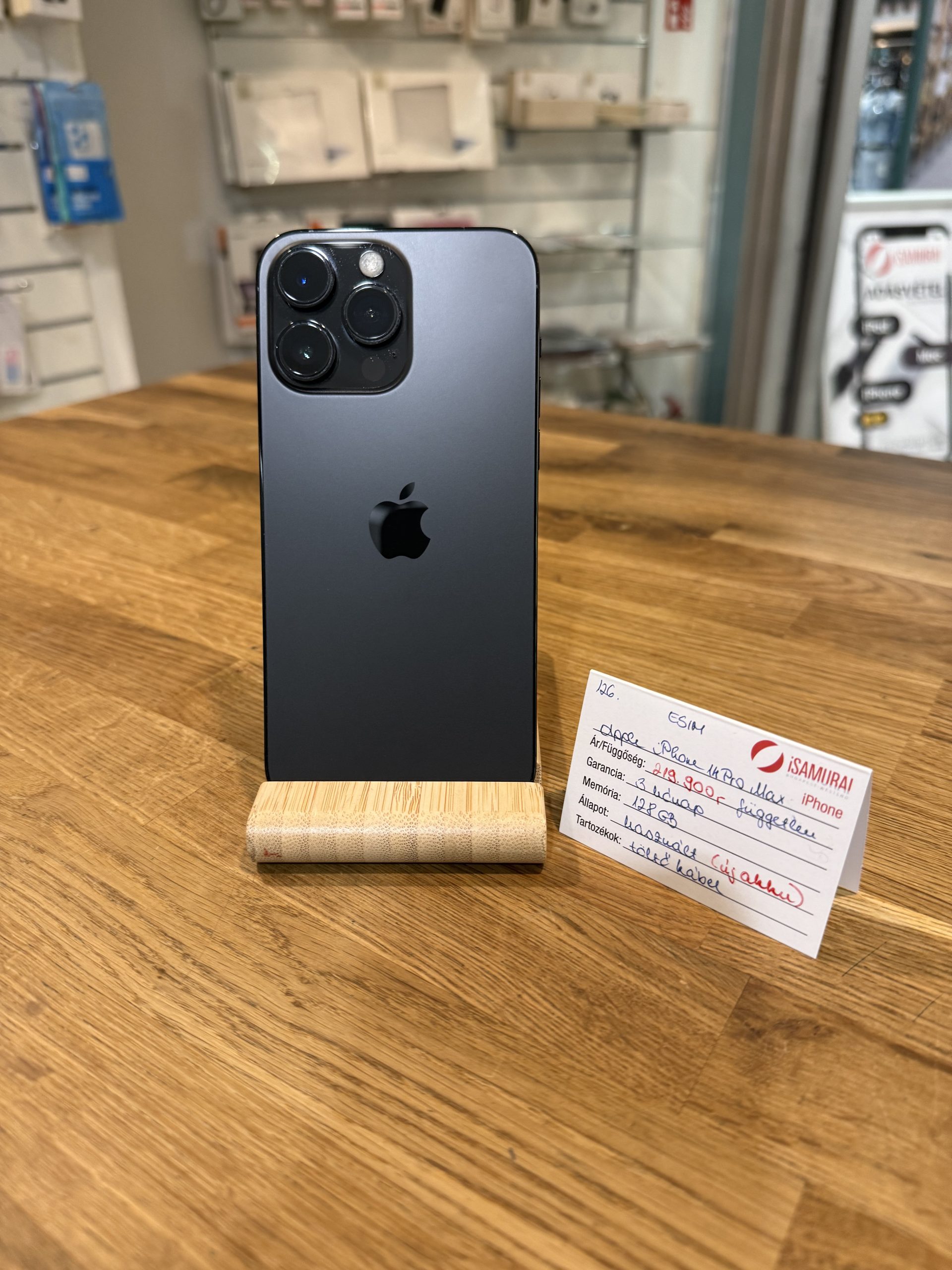 126.Apple iPhone 14 Pro Max-128GB-fekete-100% akku-Only E-sim