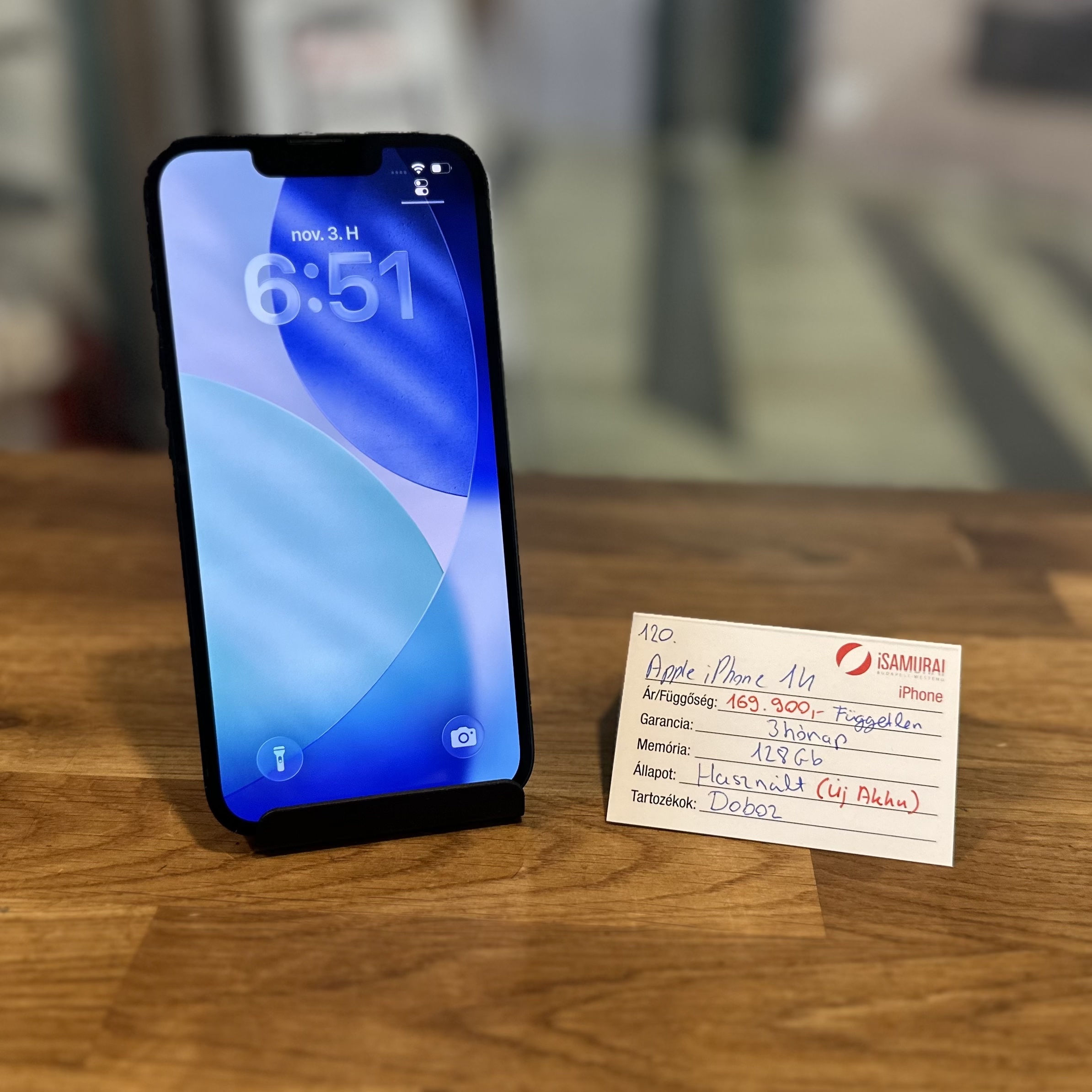 Eladó egy Apple iPhone 14 készülék. 128 GB-os tárhellyel, fekete színben. Töltőkábellel, valamint 3 hónap iSamurai garanciával. Az akkuja ÚJ!