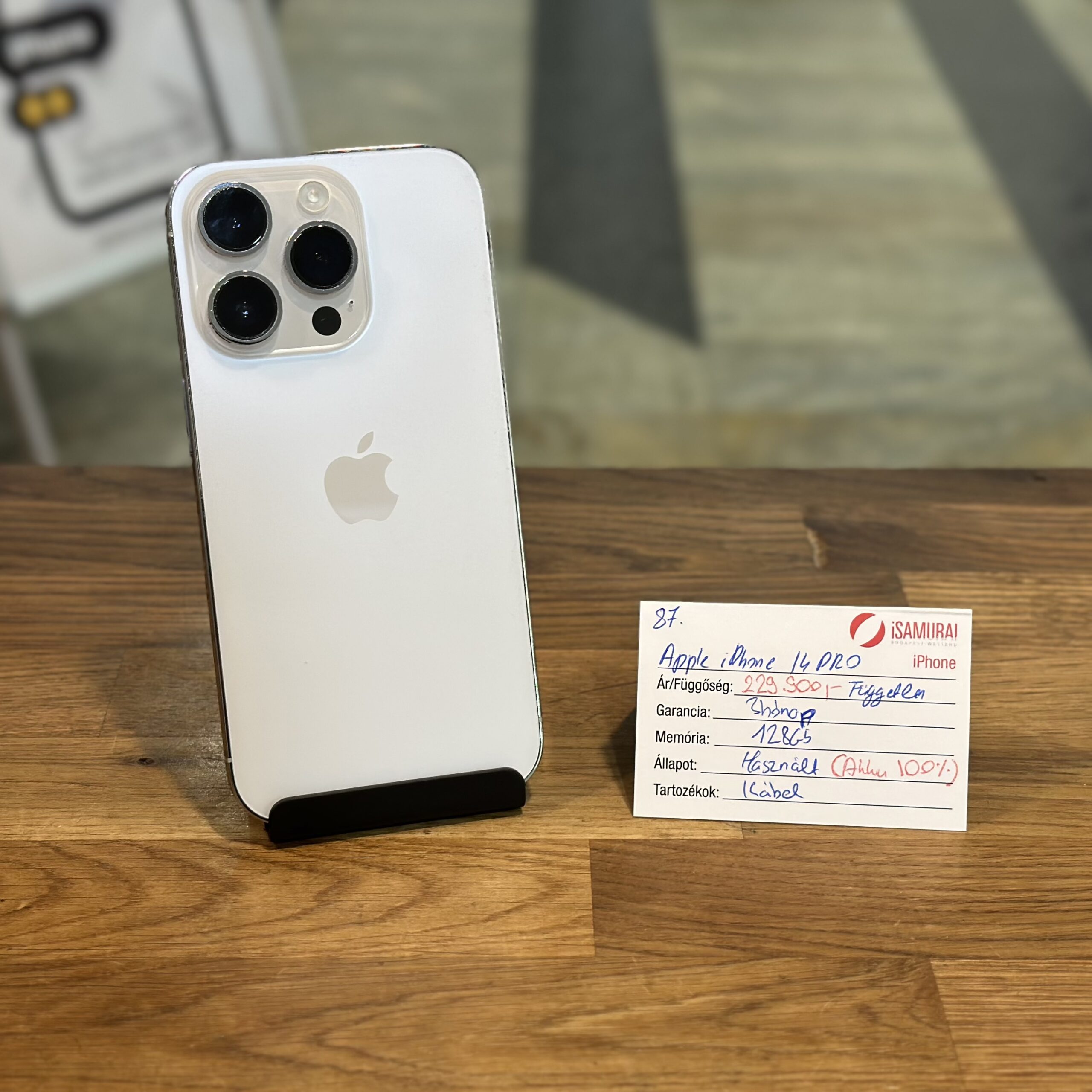 Eladó egy Apple iPhone 14 Pro Max készülék. Ezüst színben, 128 GB belső tárhellyel, töltőkábellel, valamint 3 hónap garanciával. A készülék kártyafüggetlen, bármilyen hálózaton használható. A készülék új akkut kapott.