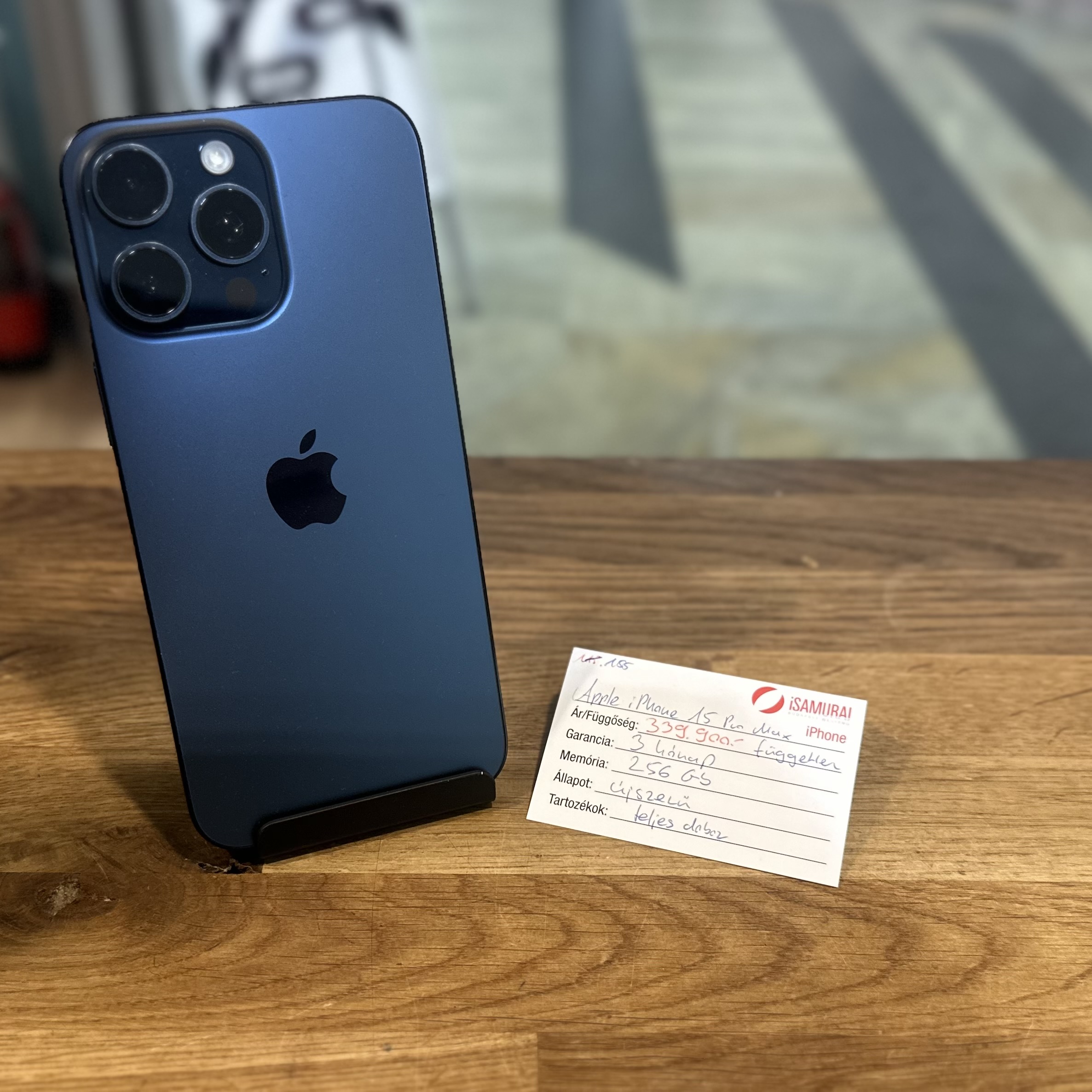 Eladó egy Apple iPhone 15 Pro Max készülék újszerű állapotban, 256 GB belső tárhellyel, kék titán színben. A készülék kártyafüggetlen, így bármilyen hálózaton használható. Töltőkábellel, valamint 3 hónap iSamurai garanciával.