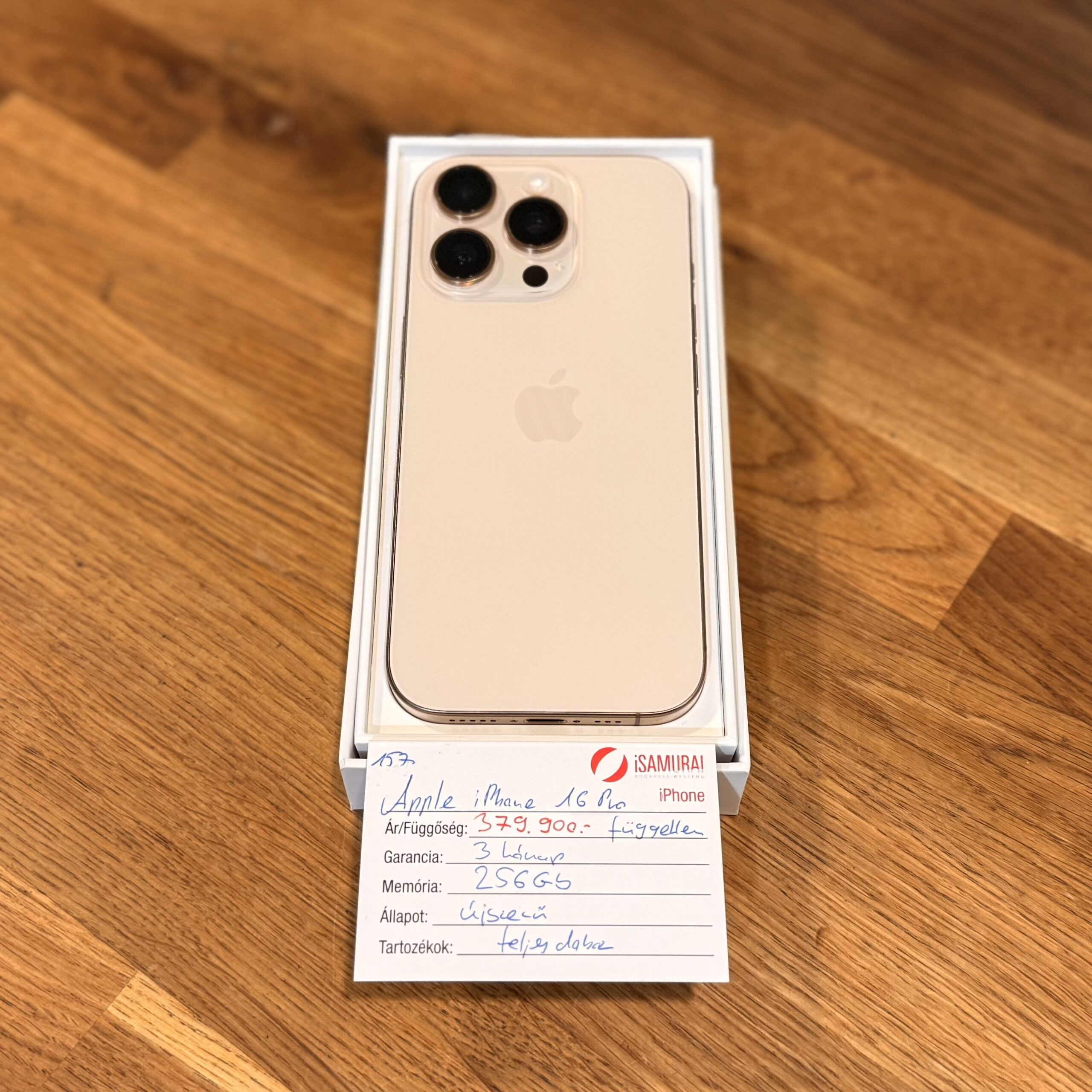 Eladó egy újszerű állapotú Apple iPhone 16 Pro készülék Sivatagi Titán színben, 256gb belső tárhellyel. A készülék kártyafüggetlen, bármilyen hálózaton használható. Dobozában töltőkábellel.