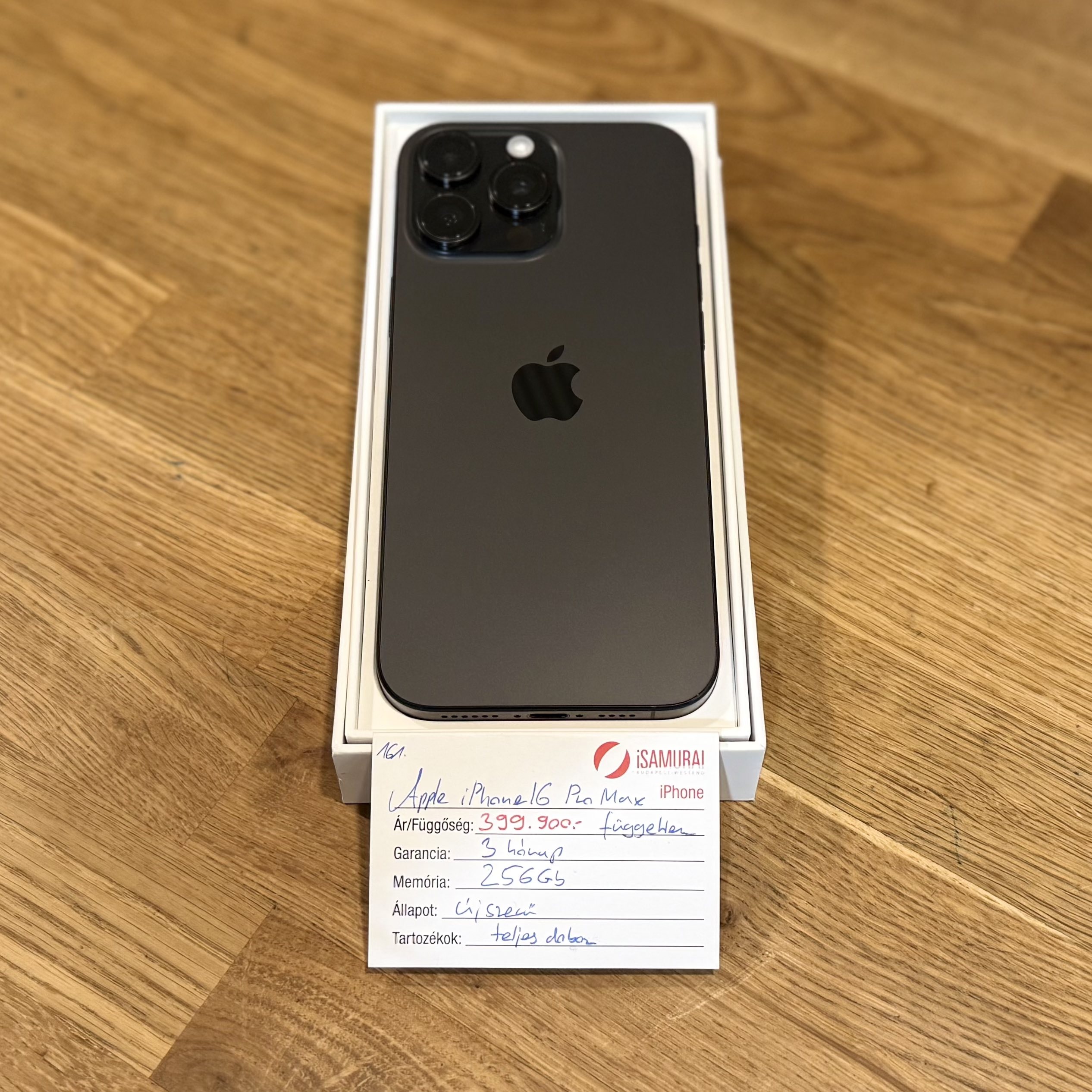 Eladó egy újszerű Apple iPhone 16 Pro Max készülék, 256 GB belső tárhellyel, fekete titán színben. A készülék kártyafüggetlen, így bármilyen hálózaton használható. Dobozában, töltőkábellel, valamint 3 hónap garanciával.