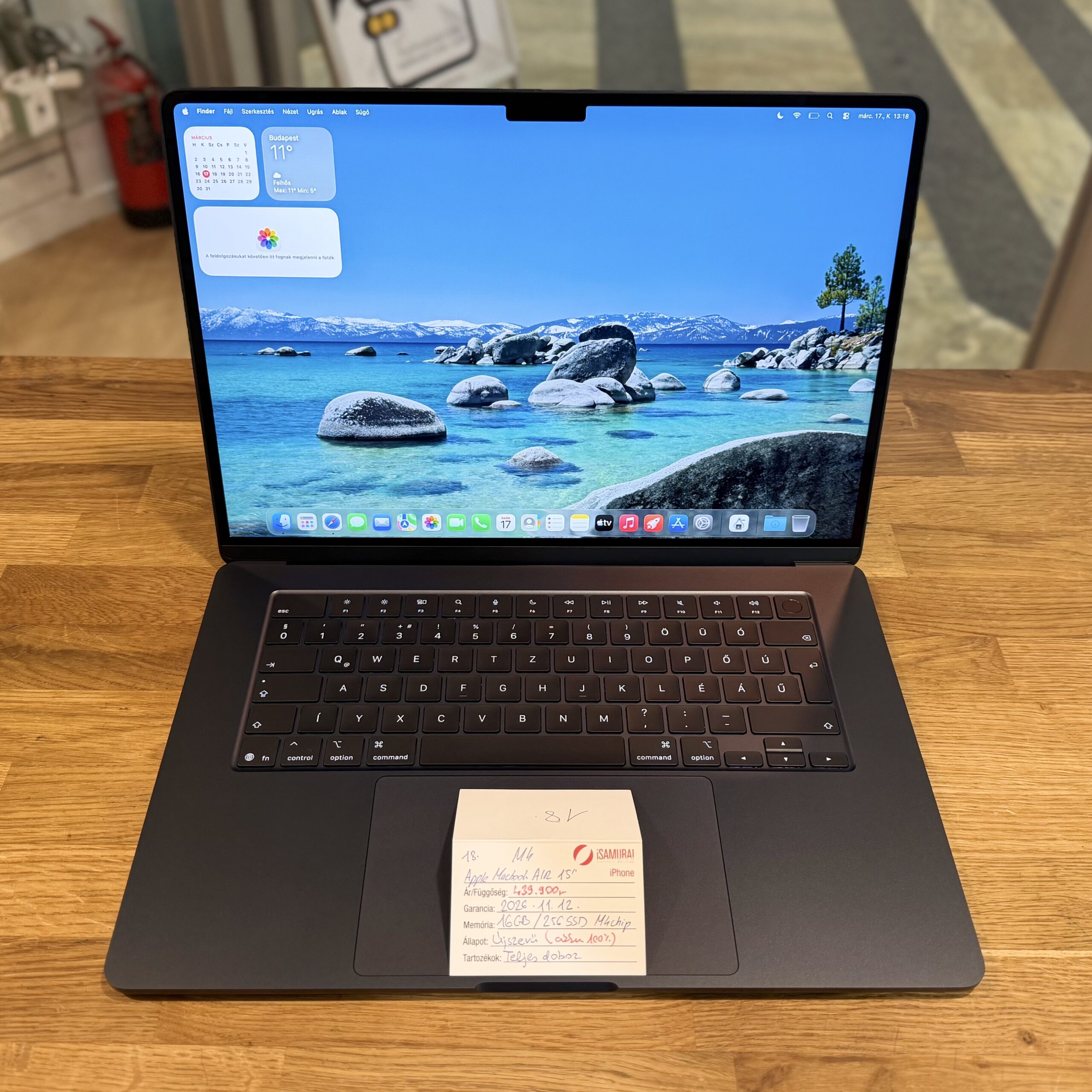 Eladó egy újszerű Apple MacBook Air 15″. 2025-ös modell, Apple M4-es processzorral, magyar billentyűzettel. Midnight színben, 16 GB RAM-mal és 256 GB SSD-vel. A készülék akkuja 100%-os mindössze 6 ciklussal, dobozában töltővel, valamint 2026.11.23-ig Apple garanciával.