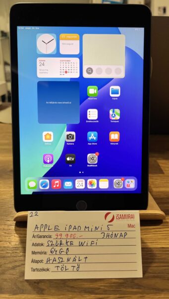 Eladó egy használt Apple iPad Mini 5-ös készülék. WiFi-s modell, asztroszürke színben, 64GB belső tárhellyel. Töltővel, valamint 3 hónap iSamurai garanciával.