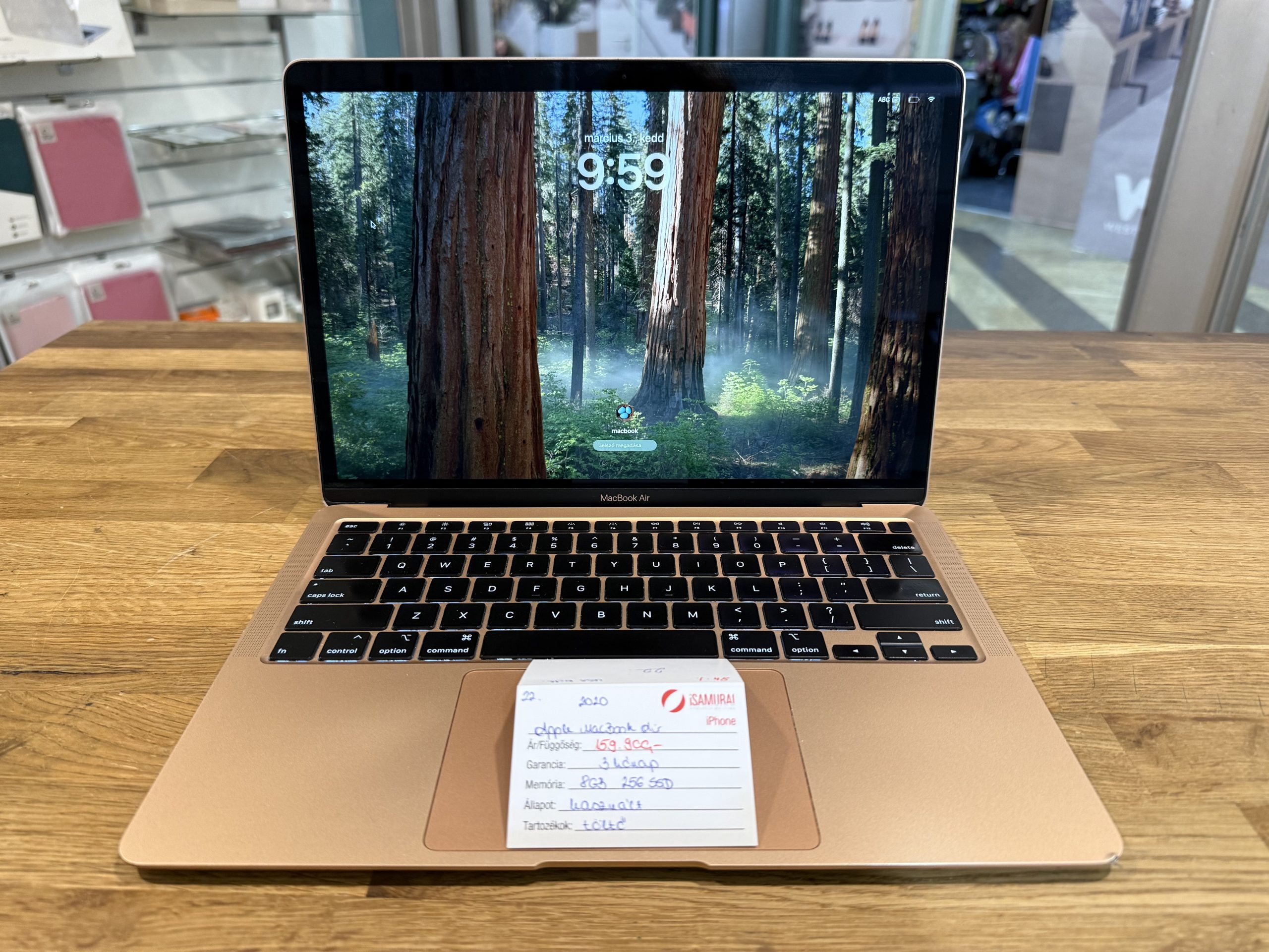 Eladó egy használt Apple MacBook AIR 2020-as modell, Intel i3-as processzorral, amerikai kiosztású billentyűzettel. Rozéarany színben, 8 GB RAM-mal és 256 GB SSD-vel. A készülék akkuja 84%-os és az eszközre 3 hónap garanciát vállalunk.