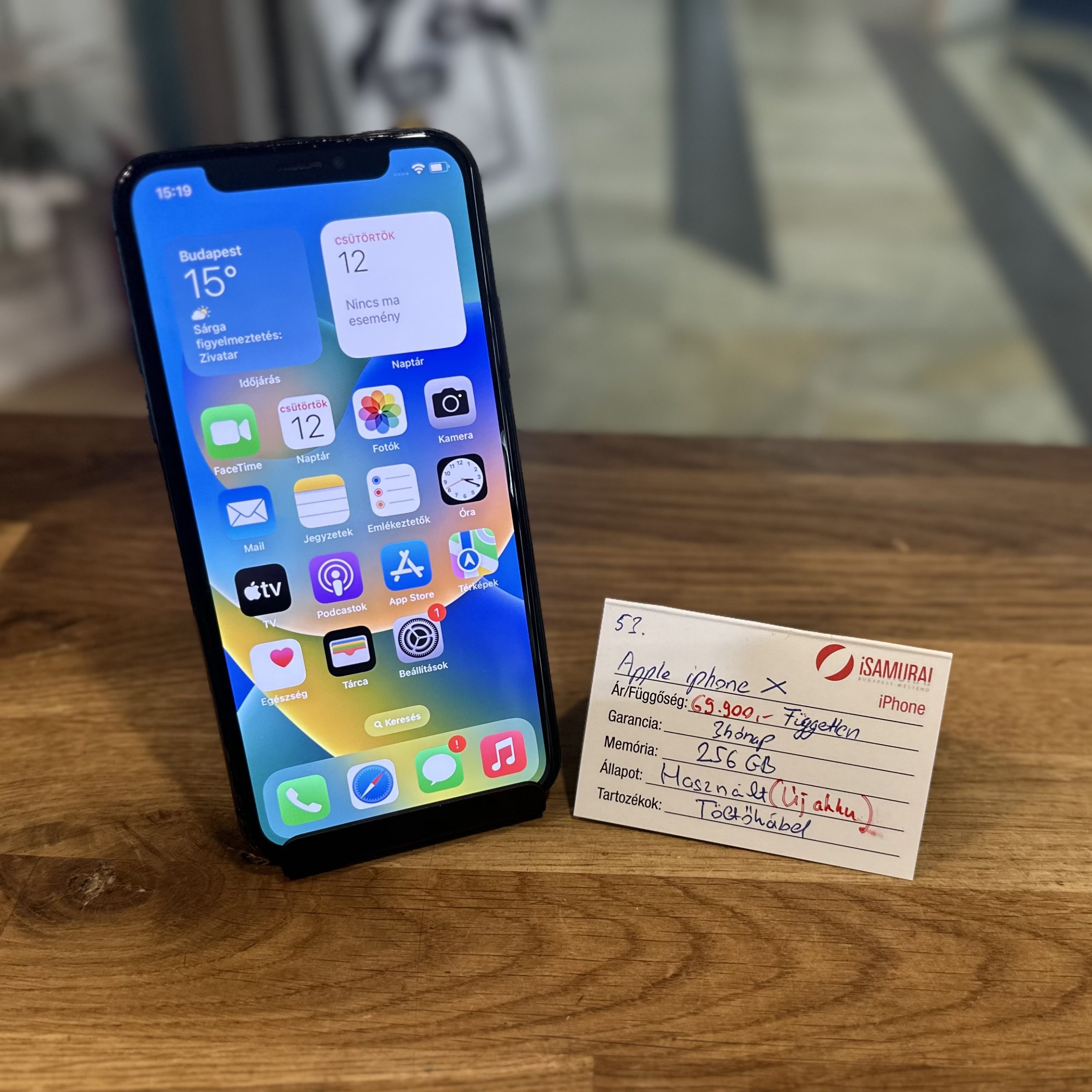 Eladó egy Apple iPhone X készülék. Asztroszürke színben, 256 GB belső tárhellyel. Töltőkábellel, valamint 3 hónap iSamurai garanciával. A készülék kártyafüggetlen, bármilyen hálózaton használható. Az akkuja ÚJ!