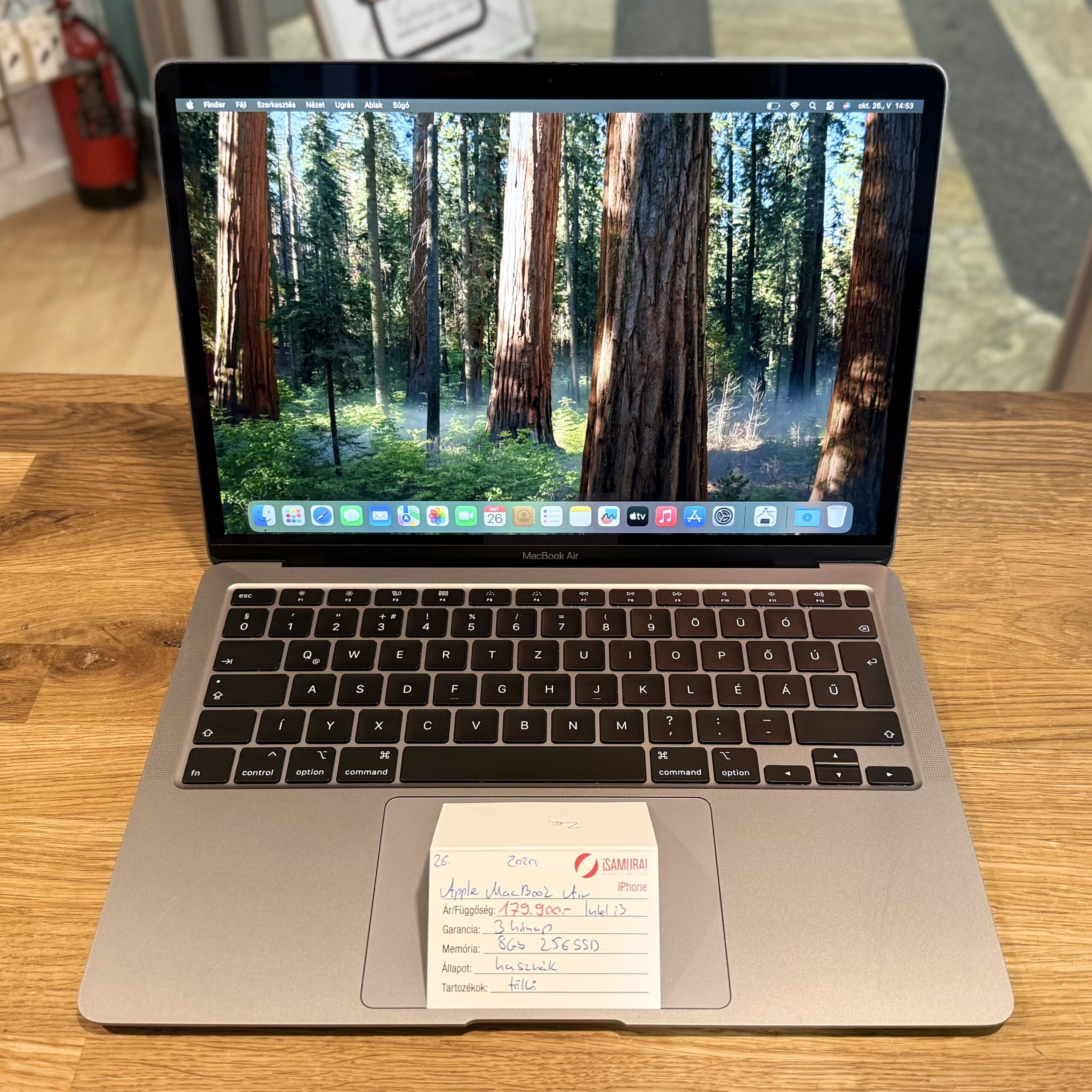 Eladó egy asztroszürke színű Apple Macbook Air. 13″-os Retina kijelzővel, 2020-as modell, magyar billentyűzettel. A készülékben egy 1,1 GHz-es Intel i3-as CPU van, 8 GB RAM és 256 GB SSD. Töltővel, valamint 3 hónap iSamurai garanciával.