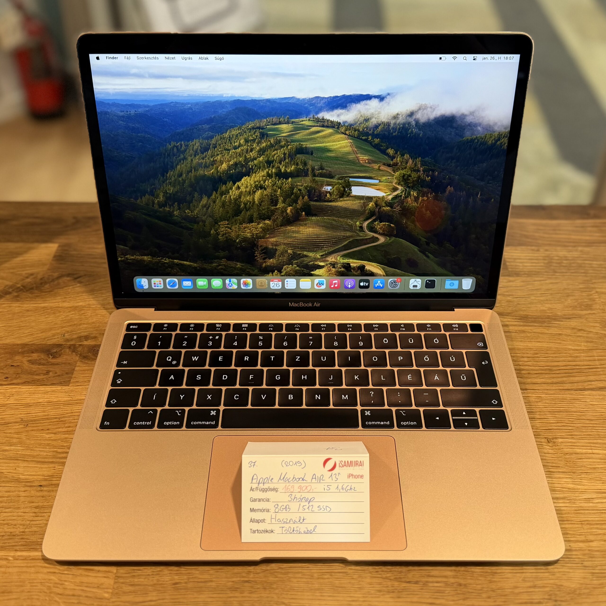 Eladó egy használt Apple MacBook Air. 13″-os retina kijelzővel, 2019-es modell. 1,6 GHz-es Intel i5-ös processzorral, UHD 617-es GPU-val, valamint 512 GB-os SSD-vel és 8 GB RAM-mal szerelve arany színben. Töltővel, valamint 3 hónap iSamurai garanciával.