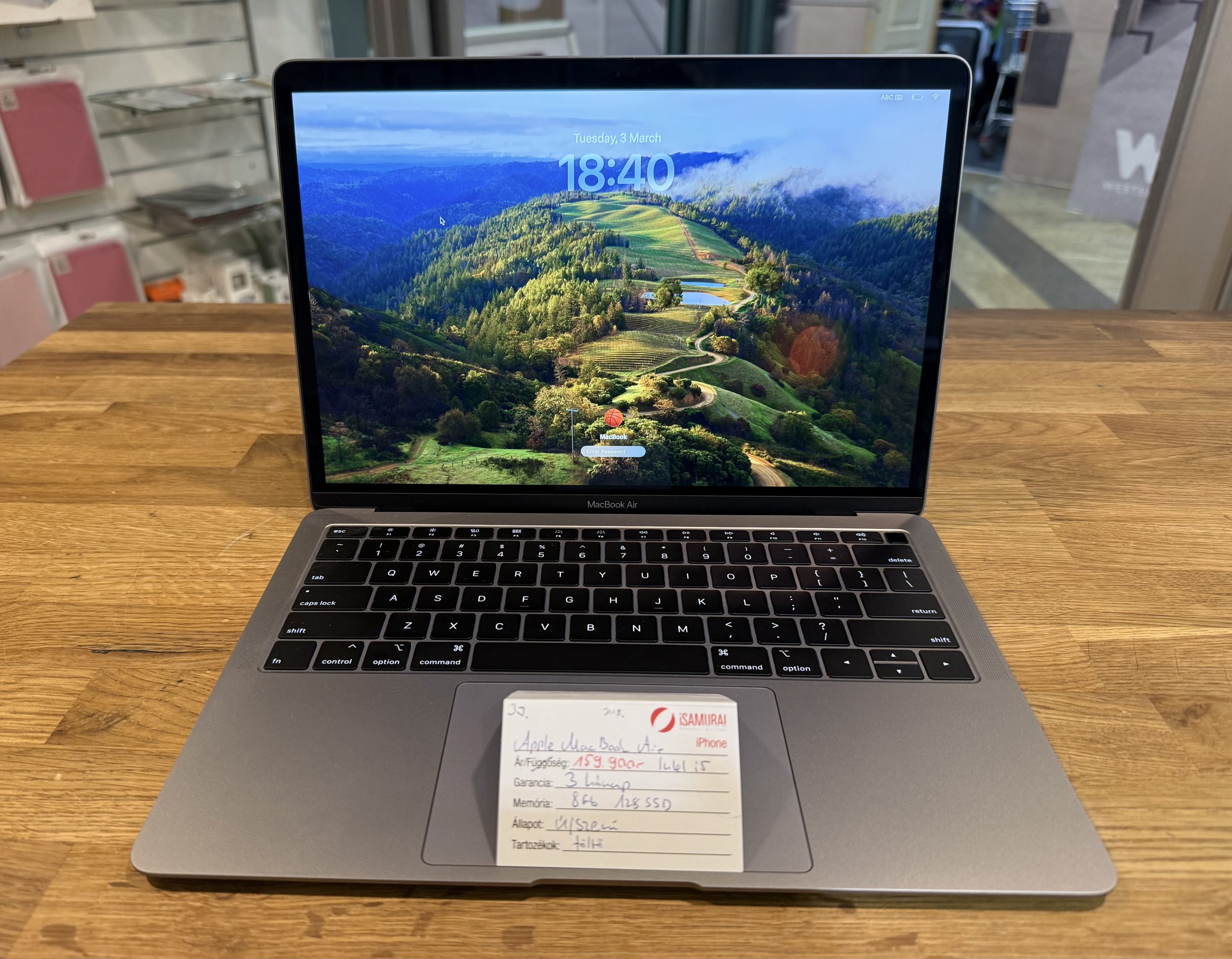 Eladó egy használt Apple MacBook AIR 2018-as modell, Intel i5 -ös processzorral, amerikai kiosztású billentyűzettel. Asztroszürke színben, 8 GB RAM-mal és 128 GB SSD-vel. A készülék akkuja 81%-os és az eszközre 3 hónap garanciát vállalunk.