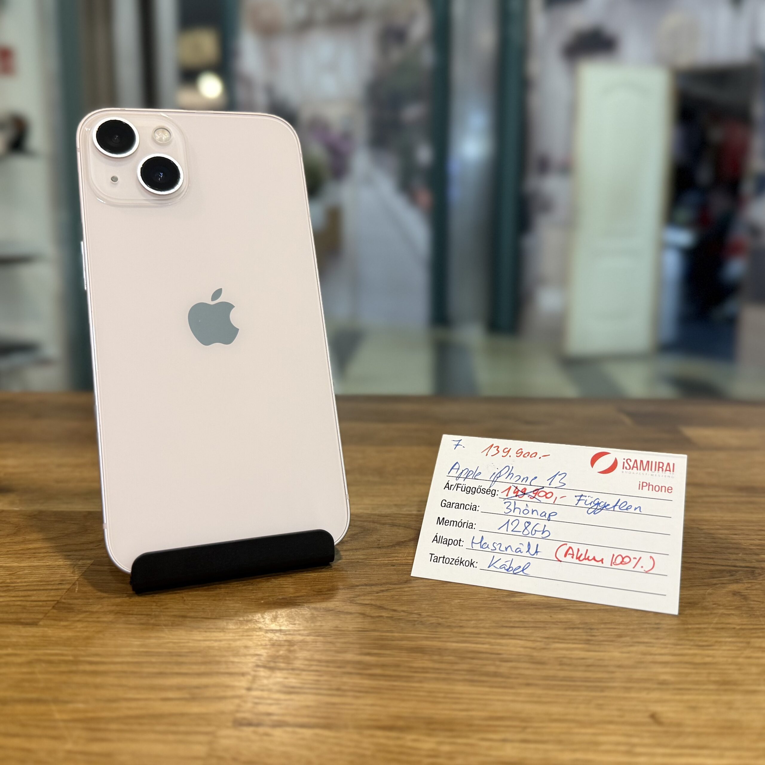 Eladó egy újszerű Apple iPhone 13 készülék. 128 GB belső tárhellyel, pink színben. Töltőkábellel, valamint 3 hónap iSamurai garanciával.  A készülék kártyafüggetlen, bármely hálózaton használható. Az akkuja ÚJ!