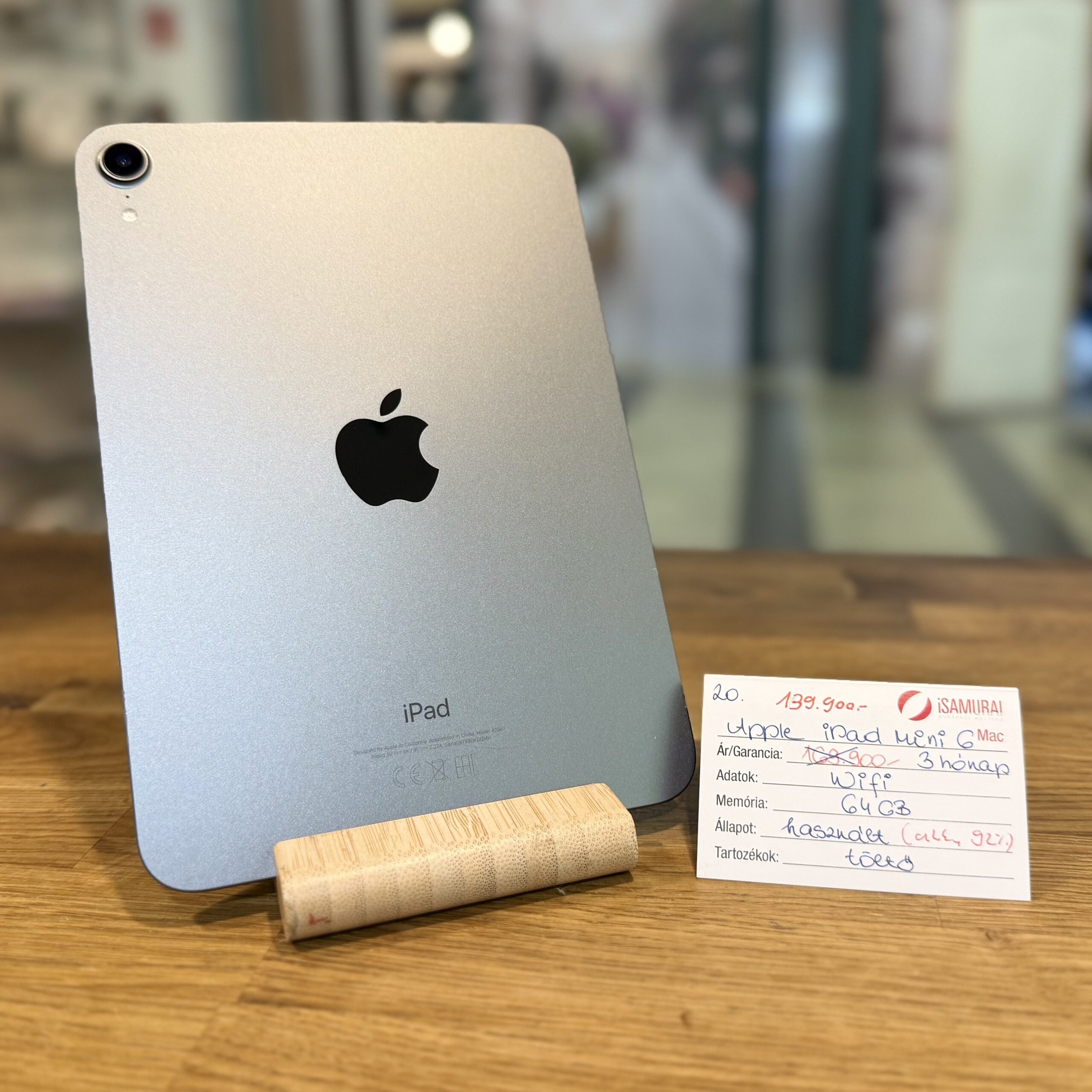 Eladó egy használt Apple iPad Mini 6-os készülék. WiFi-s modell, asztroszürke színben, 64GB belső tárhellyel. Töltőkábellel, valamint 3 hónap iSamurai garanciával.